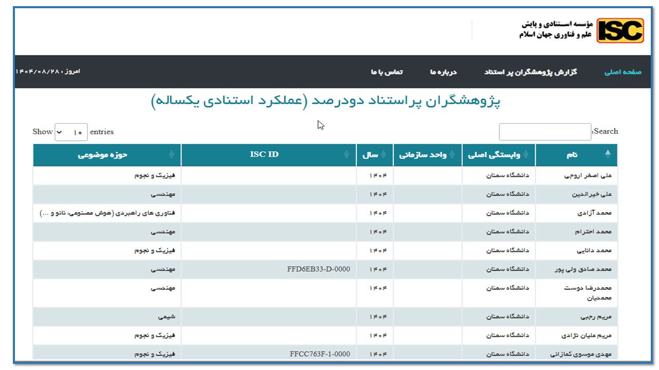 گفتنی است : در بخش عملکرد استنادی در دوران خدمت علمی (۱۹۶۰–۲۰۲۴) اسامی 3 پژوهشگر دکتر مجید اسحاقی، دکتر بهمن زارع نژاد و دکتر زهرا مروج وجود دارد که در فهرست بر اساس عملکرد استنادی یکساله در سال ۲۰۲۴ حضور ندارند.
