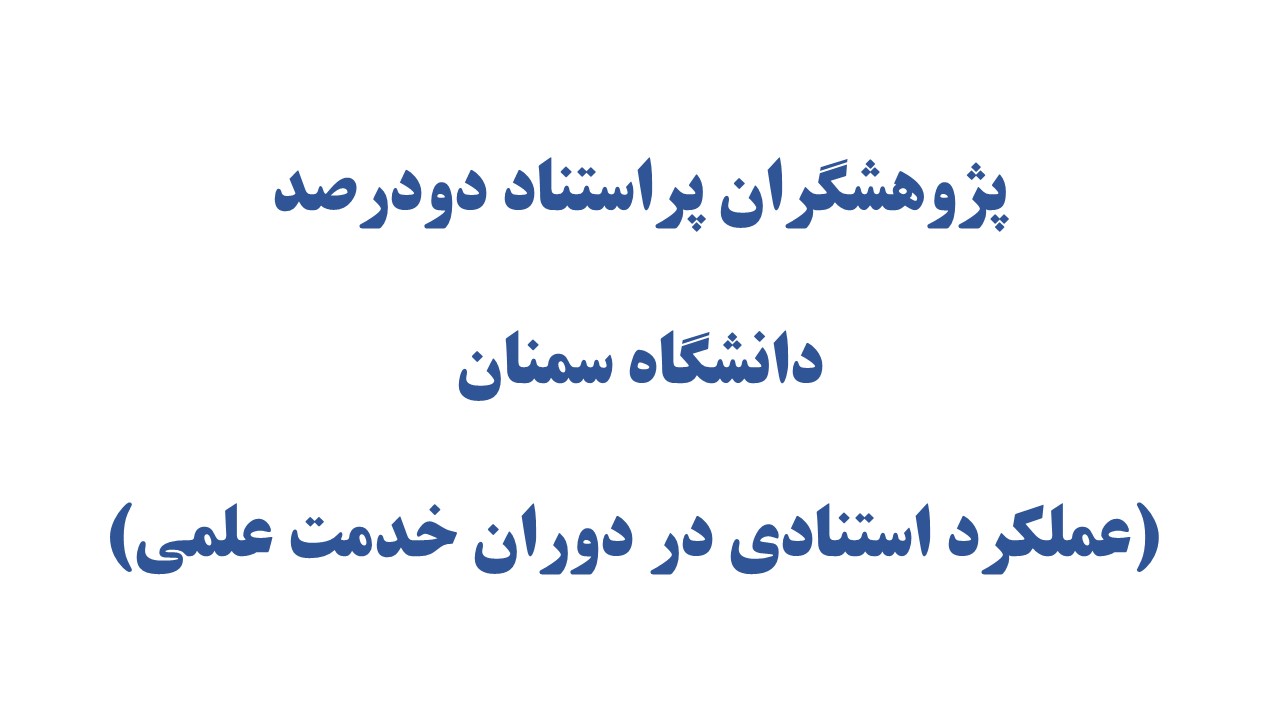 وی همچنین تصریح کرد: در بخش عملکرد استنادی در دوران خدمت علمی (۱۹۶۰–۲۰۲۴) نیز 12پژوهشگر از دانشگاه سمنان در فهرست پژوهشگران پراستناد دو درصد برتر جهان قرار گرفتهاند. این فهرست شامل پژوهشگرانی همچون دکتر مجید اسحاقی، دکتر پژمان رضایی، دکتر احمد حسینی بندهقرائی، دکتر بهمن زارعنژاد، دکتر حسین نادرپور، دکتر زهرا مروج، دکتر محمد آزادی، دکتر محمد دانایی، دکتر محمدصادق ولیپور ، دکتر سامان رشیدی ، دکتر مهدی موسوی کمازانی و آقای کریم عباسپور میشود.