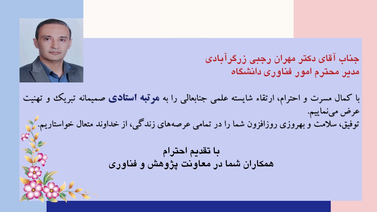 تبریک به جناب آقای دکتر مهران رجبی برای ارتقا به مرتبه علمی استادی